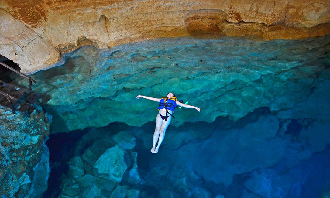 esse atrativo permite flutuar na caverna nas águas cristalinas e azuladas do lençol freático, o único esforço é apenas descer alguns degraus e nada mais!