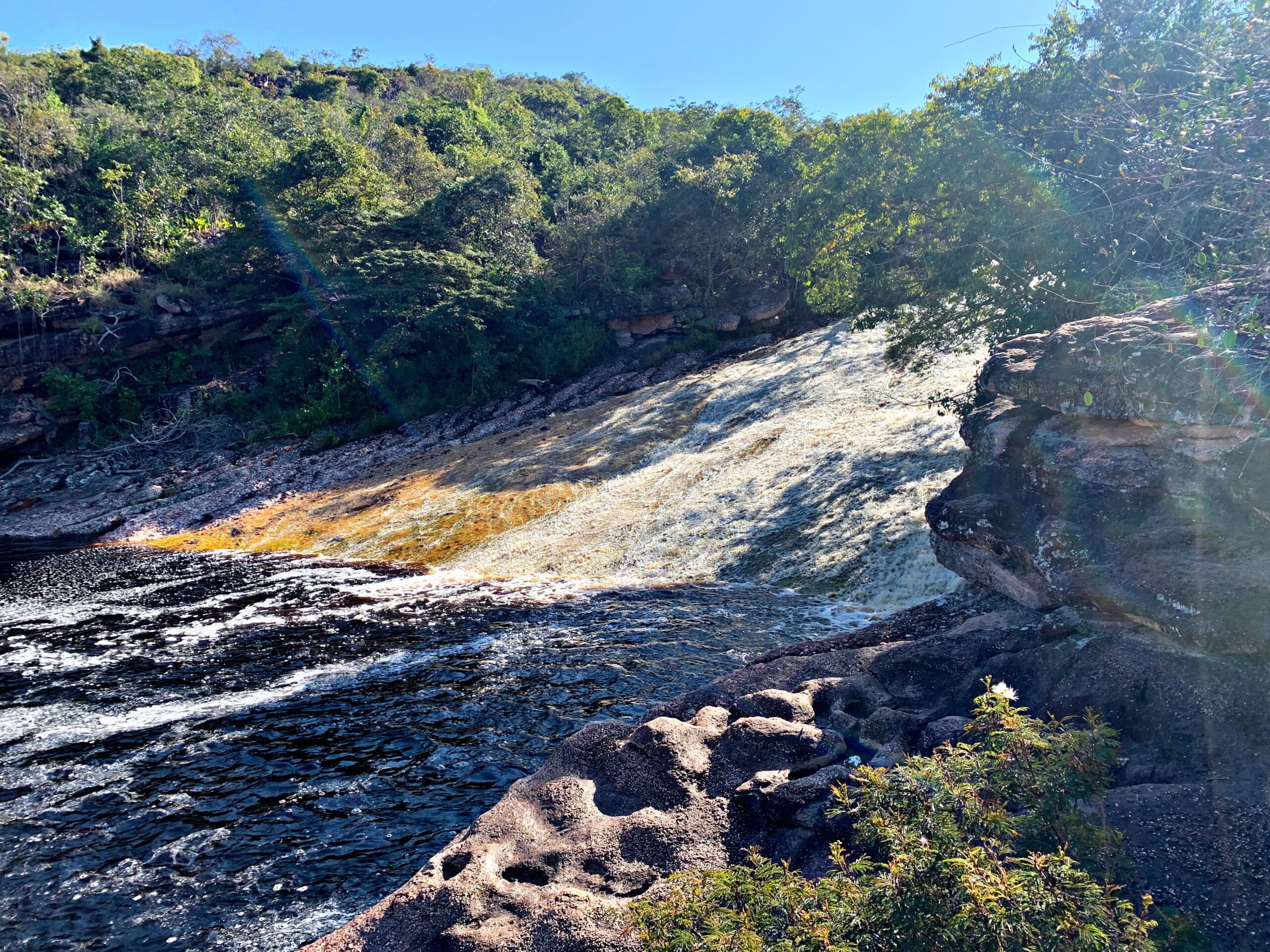 À medida que avançamos, teremos a chance de apreciar a serenidade do rio, as formações rochosas e a vegetação envolvente. Esta rota alternativa adicionará uma dimensão única à nossa aventura, revelando mais dos encantos naturais da Chapada.